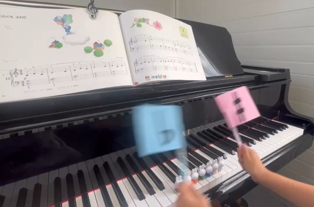 シャープは右手、フラットは左手に持って、旗あげゲームのように楽しめます🎌