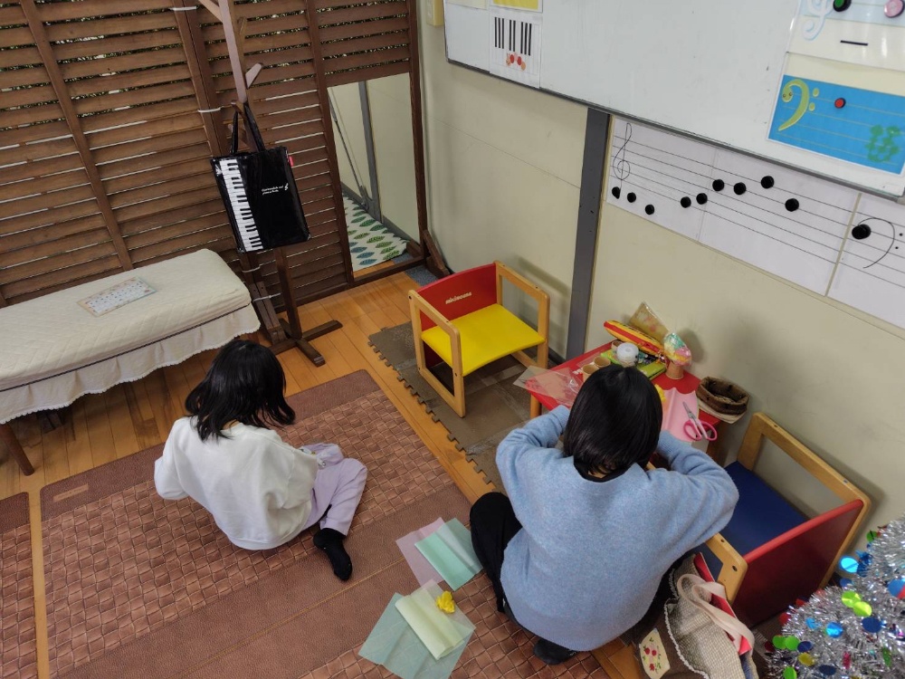 いつもは個人レッスンで入れ替わるだけですが、この日のレッスンは前後の時間のお友だちが一緒になり、クリスマスのオーナメント作り🎄